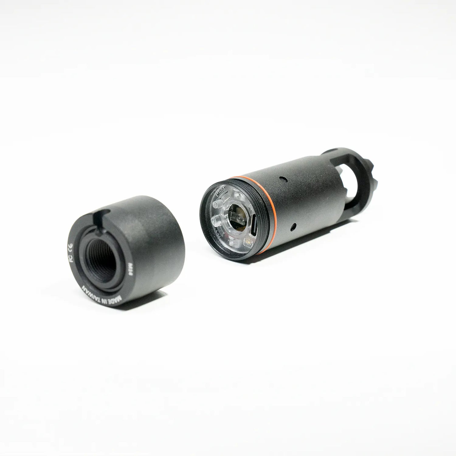 Simulates a realistic AK muzzle break's appearance to conceal the powerful airsoft tracer unit underneath. The 'Alpha', named after the iconic Spetsnaz detachment, is adorned with a striking bezel at the tip for a menacing look!