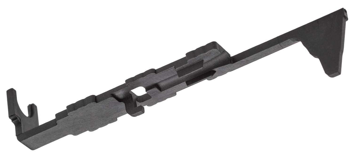 FPS carbon fiber reinforced AEG Tappet Plate Ver. 2 (ASV2CF) is constructed out of polymer and is designed to be attached to the air nozzle and sector gear. This process controls the feeding of BBs from the magazine into the hop up chamber.
