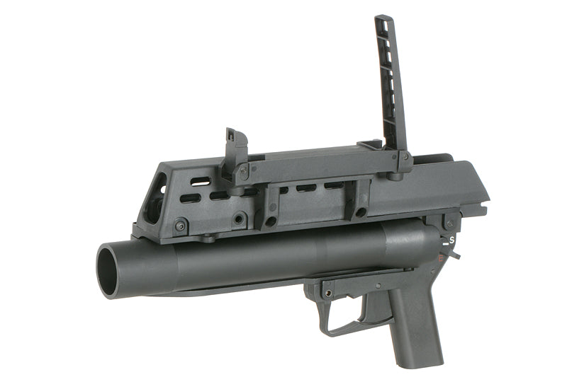 A truly authentic and incredibly convincing replica of the AG-36 grenade launcher, purpose-built for G36 rifles. The craftsmanship made by S&T, is of the highest quality, making you feel as though you're handling a real AG-36. Similar to the original, this launcher features a folding barrel with a simple push-button mechanism, offering a significant advantage over an M203, especially when deploying longer Grenades.