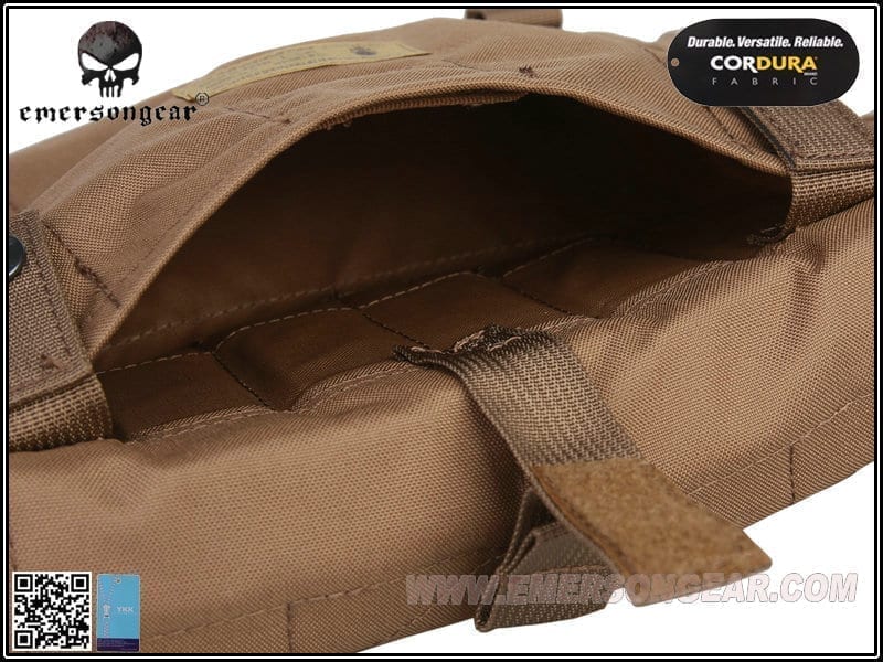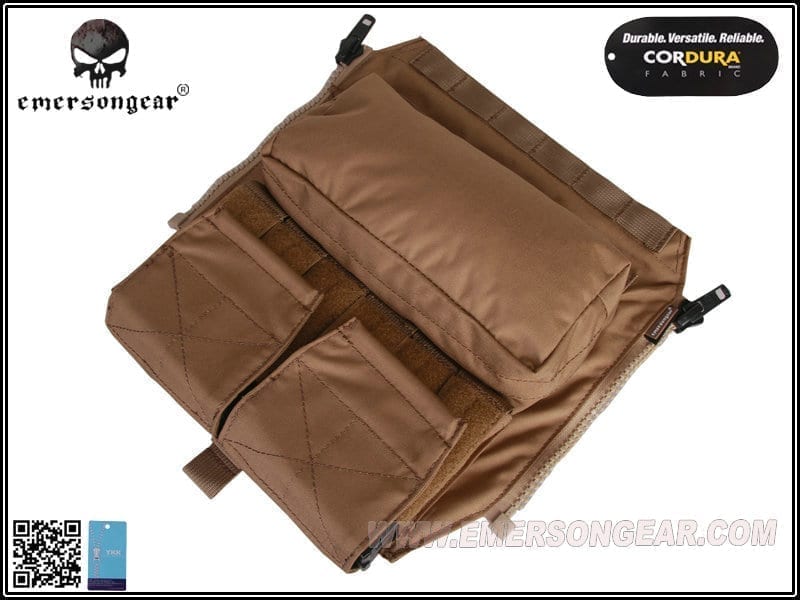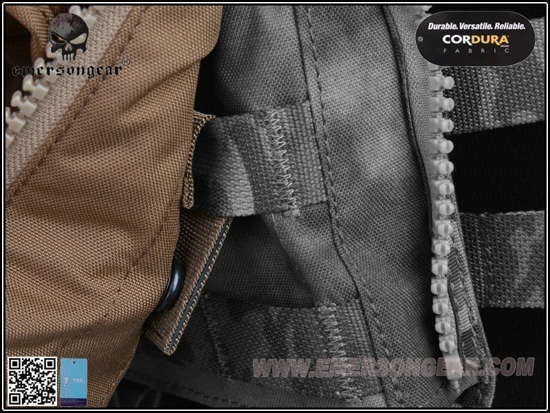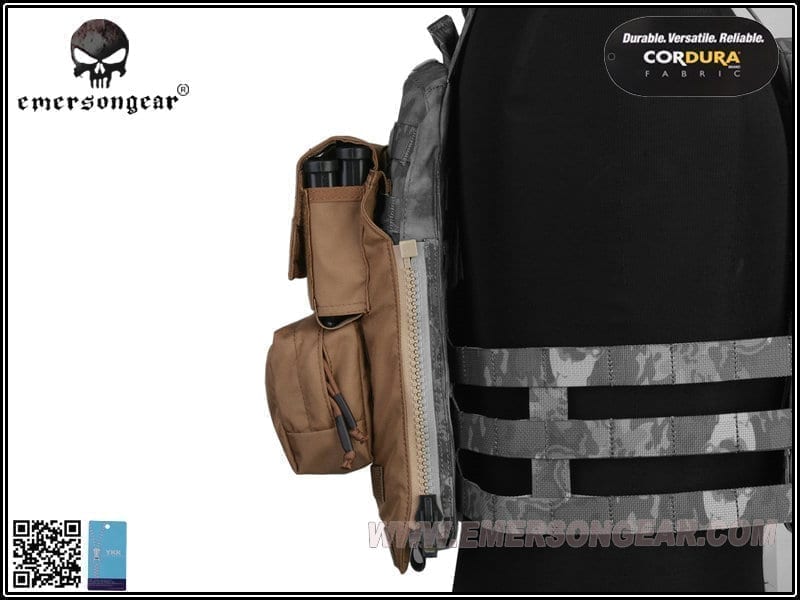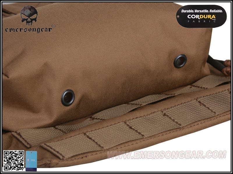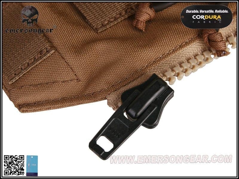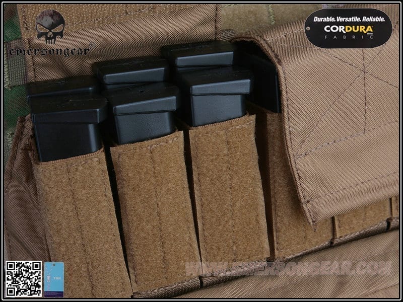 So you need to carry more pistol magazines for you and your team as well as other equipment for yourself and a water bladder. Luckily Emerson Gear has you covered with this useful bit of kit. It is made from 500D Cordura®, which makes it strong and durable. It is designed to mount to any AVS, JPC or JPC 2.0 style plate carriers using its zips and molle tabs. At the top is a velcro close opening, which allows access to the water bladder pouch and thus giving you the ability to carry water with you into battle. There are also pouches with velcro closed flaps for holding six to twelve pistol magazines for you or your squad mates. Below these pouches is the utility pouch for storing needed items such as gloves, torches, tools or navigation equipment. Below the utility pouch are two strips of molle for you to attach a dump pouch or similar piece of kit.Features