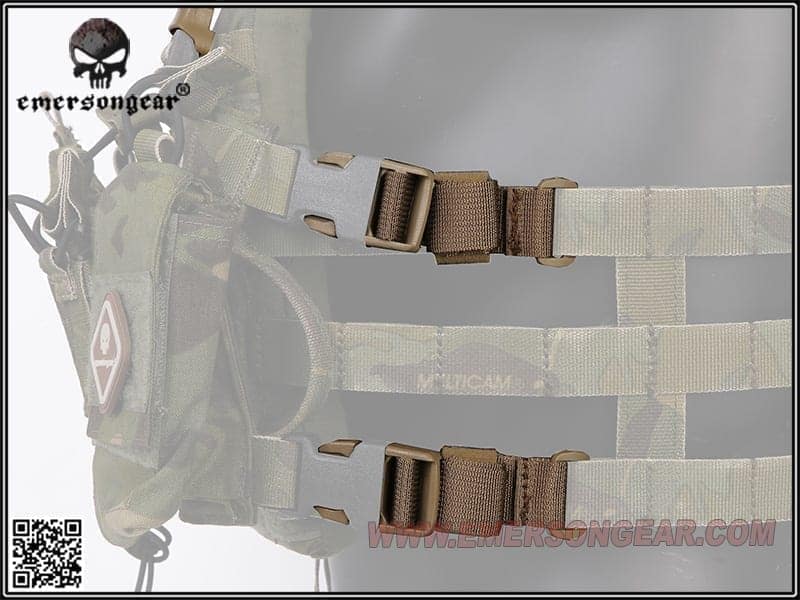 A chest rig to vest adapter kit by Emerson Gear to clip your chest rig loadout to your chosen vest or plate carrier with the assist on just a few buckles and straps