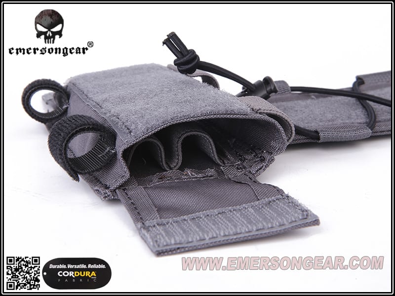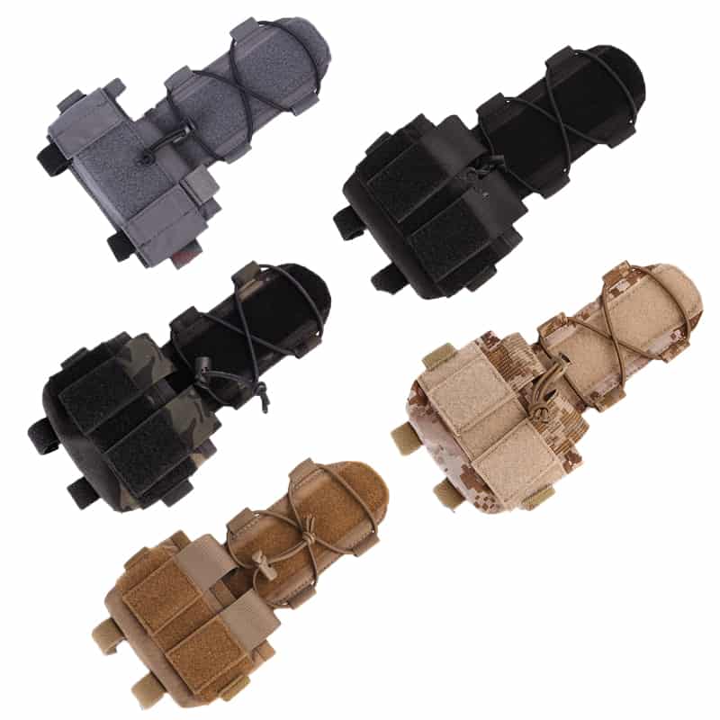 The Emerson Gear Helmet Mohawk Battery Bag is designed to fit onto the velcro of a helmet and help to counteract the weight of your helmet-mounted night vision. It is made from 500D Cordura® and is thus well built and durable. The pouch at the base is designed to take either a counterweight or hold the battery for your night visions. It opens at the top using two velcro flaps. The lower side of the pouch has two velcro tidiers for running cables through ans two elasticated straps on the sides for holding cables or other useful small items. The top half of the Mohawk has a velcro panel running along it for attaching items such as lights to. It also has elastic cord crossing over it for holding items such as a tourniquet or cables to your helmet.Features