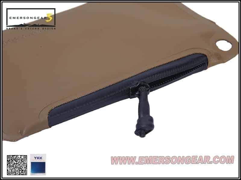 The Emerson Gear Waterproof Hot Press Pocket is a fantastic item for keeping your stuff safe from water, dust and dirt. The pocket is ideal for keeping paperwork, phones, watches and other items dry during the day. The pocket is made from waterproof rubber material and is resistant to damage. The zip is water resistant and the zip has a paracord puller attached to help you with opening and closing. The pouch has a moulded hole in one corner so you can easily attach it to items such as carabiners or hooks.Features