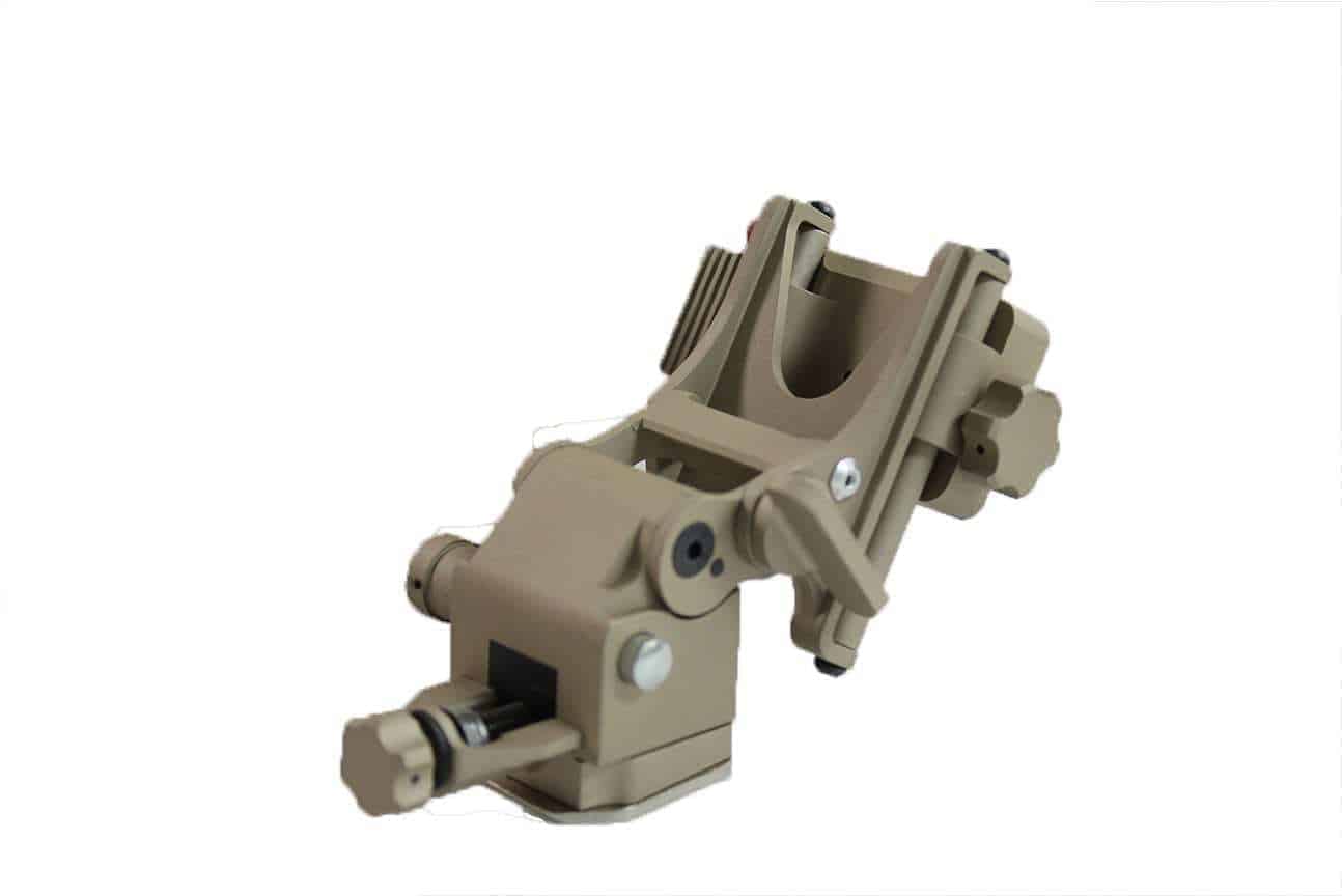 Soild Construction Simular to the real version but less than 1/5 of the price of a real mount. Fits on all main helmet mounts and will take pvs-15 and pvs 18 night vision as well as other none generic night vision that use the central Wilcox dovetail type fitting.