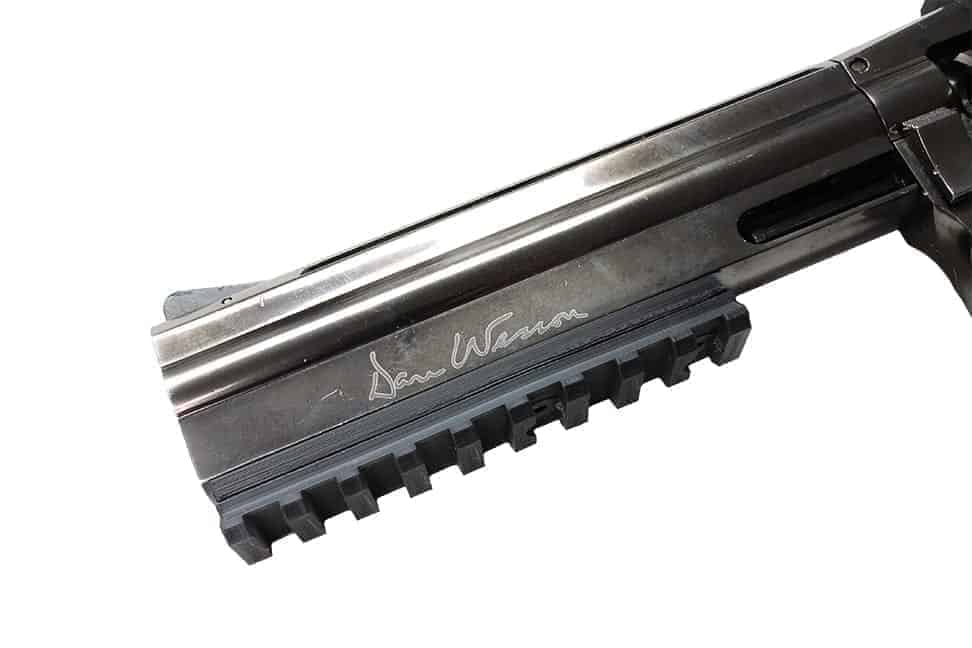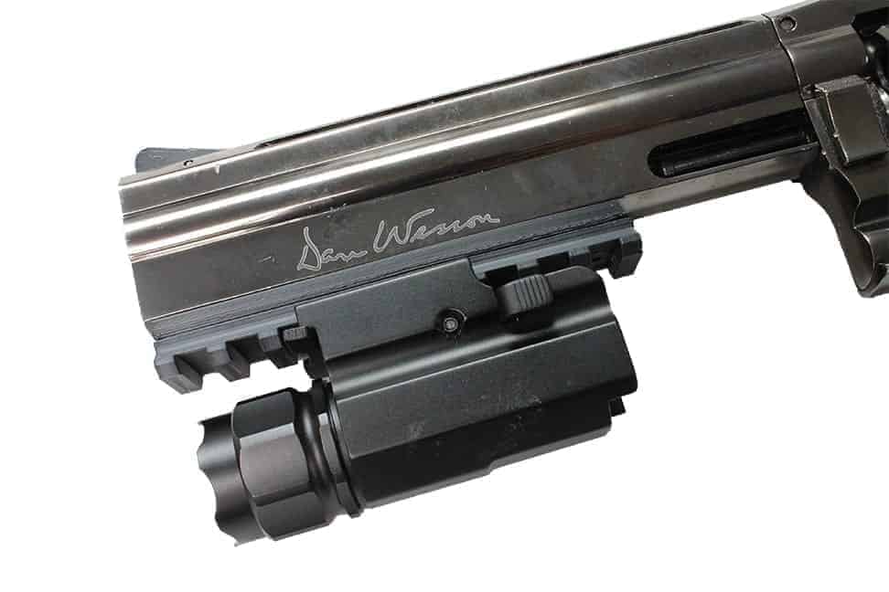 To match the small top rail on your Dan Wesson 715, why not go for the low profile 20mm RIS rail which attaches to the bottom of your 6″ barrel using the two threaded holes on the underside and the supplied M4 screws. This lower rail is perfectly contoured to the curvature of the 715 barrel for a perfect ans seamless fit. Attach a torch, laser or any 20mm picatinny rail accessory to the bottom and keep your revolver as streamlined and slim as possible. Have a look at our other aftermarket accessories for the ASG Dan Wesson 715 revolvers.- Slim, low profile design