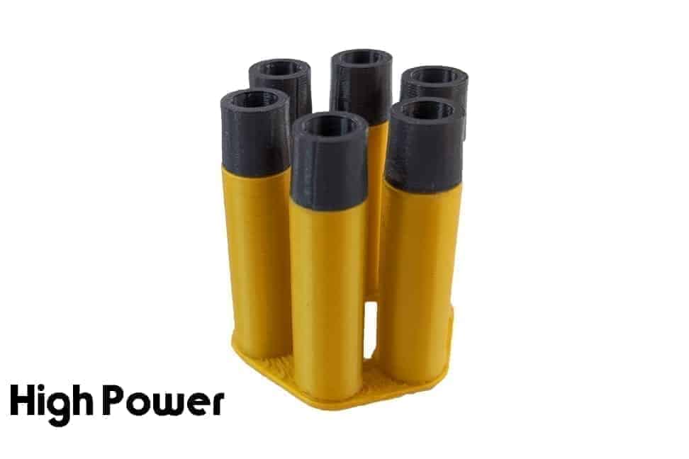 The High Power Hexshot is recommended for revolvers with 4" barrels or shorter to get the most out of your short-barreled revolver, whilst keeping the FPS below the legal limit for sites. The High Power Hexshot produces similar FPS to the standard Wingun/Dan Wesson shells, so make sure your revolver is under the FPS limit before deciding if you need the high or low power version.