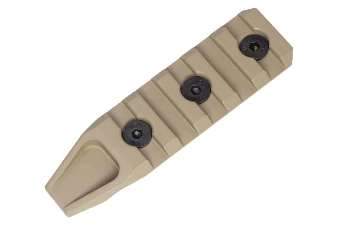 Standard fitting for Keymod rail systems to accommodate the fitting of a 20mm picatinny accessory.