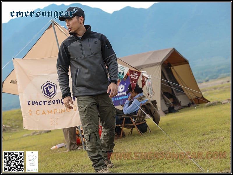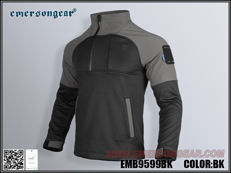 A highly athletic style of top, cleverly designed by Emerson’s ‘Blue Label’ to provide the perfect balance between warmth and breathability. Constructed out of ‘Ecological Recycled Fabric’ which bears great flexibility, granting the wearer utmost manoeuvrability in colder temperatures where a coat would usually be suitable, but would hinder a person’s speed and performance. The ‘Rhinocreos’ top is an essential bit of kit if you are looking to shed some weight off of your loadout. Black with Grey Shoulder area.