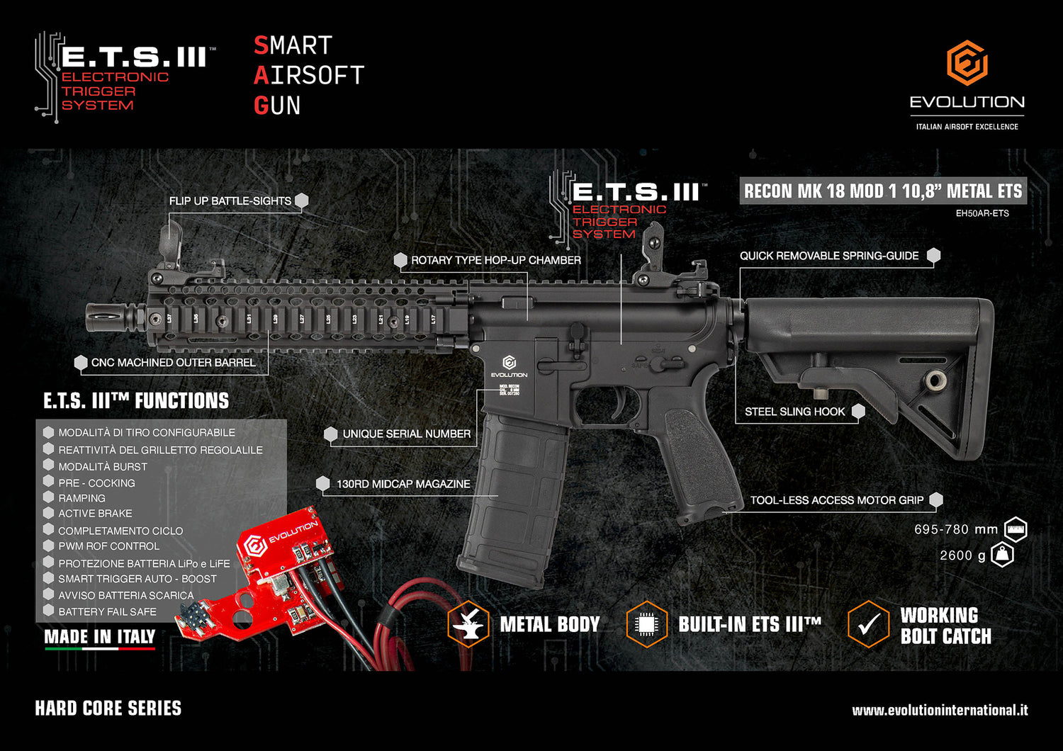 Evolution Recon MK18 Mod. 1 10.8" ETS III - Black (Metal body)-Evolution International-Socom Tactical Airsoft