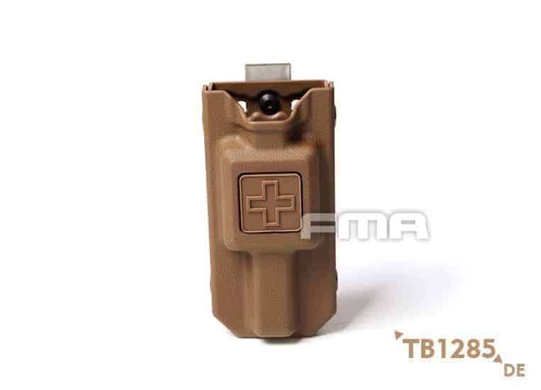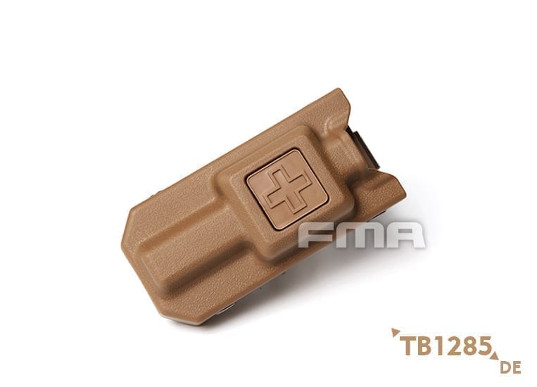 This is a hard plastic tourniquet carrier designed by FMA to mount onto you molle vest or belt rig and sit as low profile as possible as to not hinder your movement or access to any other pouches. The pouch comes in various colours to suit your loadout and bears the standard 'medic' cross on the front to signify medical equipment. The two halves are riveted together to ensure a secure fitting as well as functioning as drain holes should you be out in the rain, it makes sure the pouch doesn't fill up with water. These have a fantastic build quality compared to other tourniquet holders on the market, with their open-top design, you know you can grab your tourniquet quickly without it getting snagged on any loose parts of a standard pouch. Features:- Molle mounted