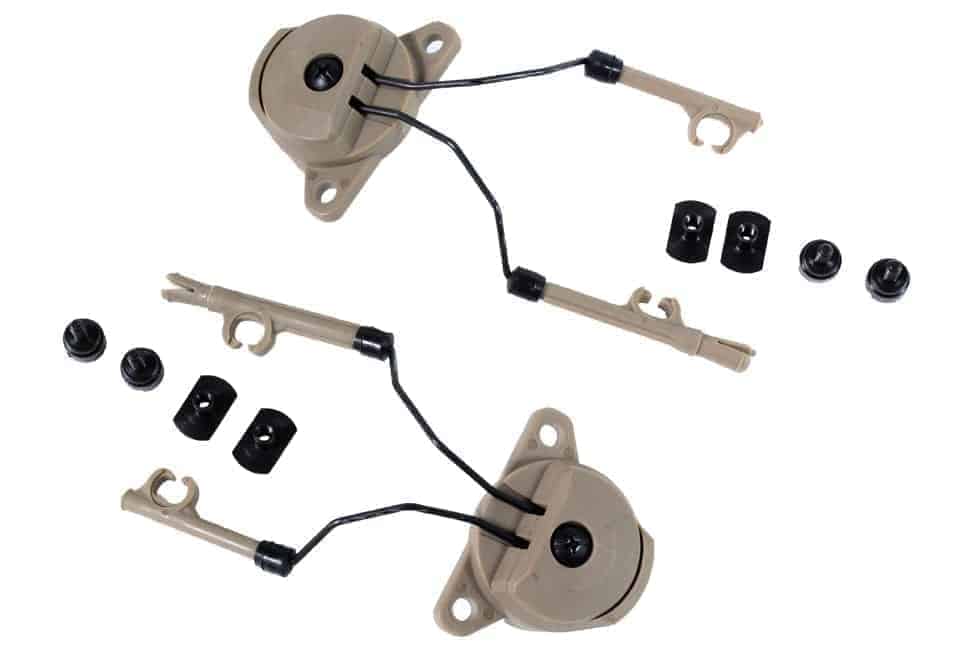 A helmet rail adapter or headset adapter set for the FMA EX helmet series. Simply use the screws and nuts to fasten the adapters to either side and connect the ear cups