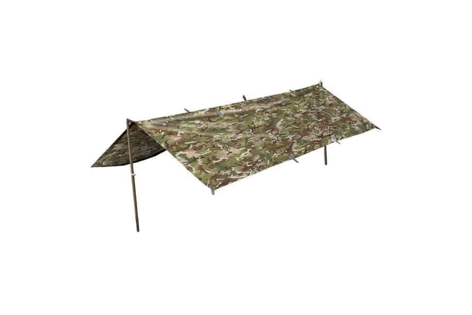 The Kombat UK military basha is brilliant for cadet camps and milsims. It is camouflaged in British terrain pattern and is made from waterproof coated nylon. This is designed to be used in the field for camping or if paired with another basha can be used as a ground sheet. The bahsa is a highly adpatable piece of kit and is able to be used to create a vast number of shelters to keep you dry and protected at night.Features
