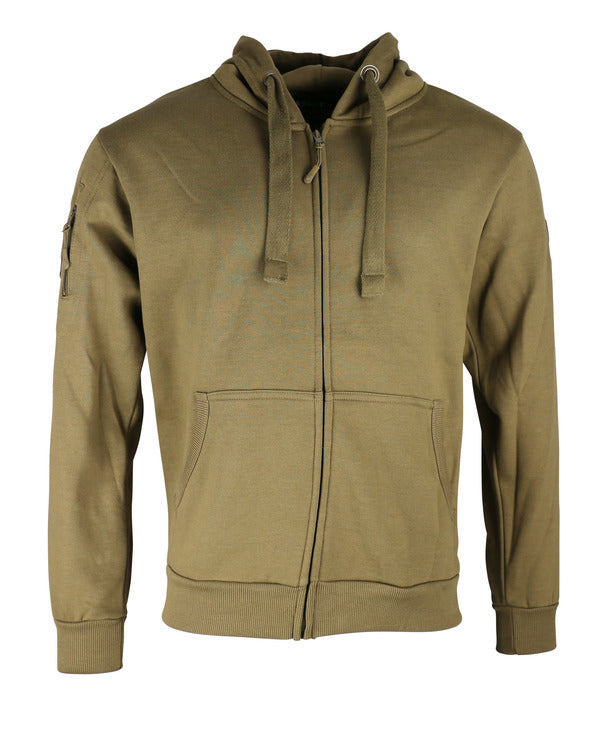 Kombat UK Spec-Ops Hoodie comes complete with a hood, Front Zip and Velcro panels on the arms along with an arm Zip pocket.
