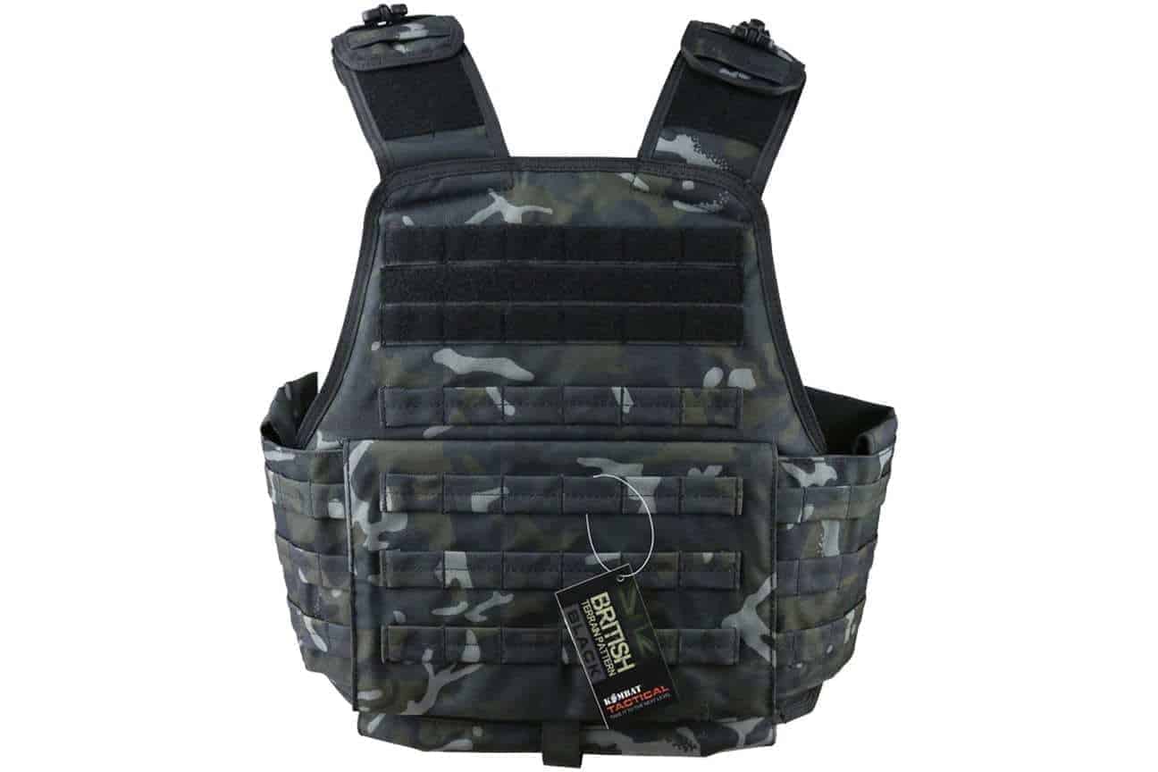 A fully adjustable, full-body Viking plate carrier by Kombat UK with loads of space for tactical molle pouches. It is built with a full-size cummerbund