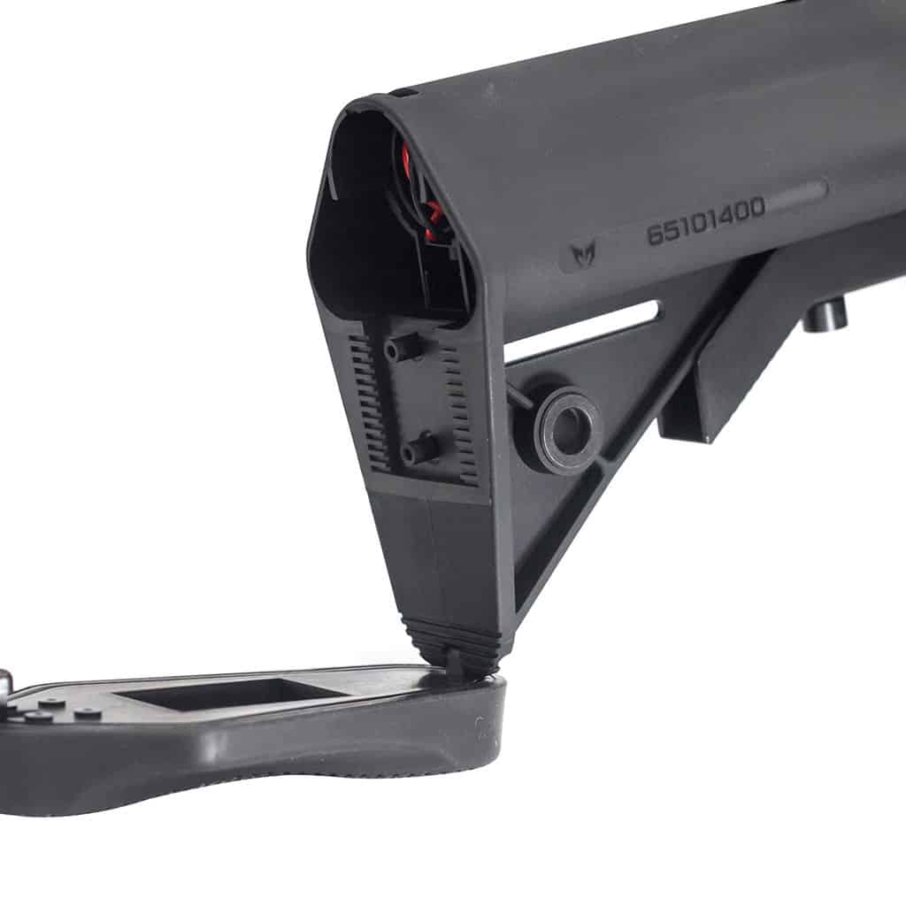Upgraded Internals The stock XtremeDuty AR-15 comes with a newly-enhanced Modify REBAR 8mm V2 gearbox with improved internal parts. The REBAR V2 gearbox adds a 1mm thick steel rib, which can handle springs up to M150. Quick-change Spring and FPS adjustable Remove the cover on the rear stock and insert the included 4mm hex key, you can adjust the FPS and even change the spring without disassembling the gearbox, upper and lower receiver, or the buffer tube.