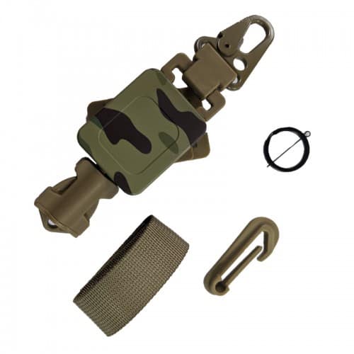 Tired of losing keys, grenade pins or other small accessories? This product is for you! The MRB system or Multifunction Retractable Buckle system has been designed to enable the user to use the item (keys for example) whilst they still remain attached to them to prevent loss. The system can be used with Molle, belt or clip attachment to attach it to your gear or person and the other end features a heavy-duty retractable line that also had a disconnector clip (if you did need to remove the item to give it to another member of your team for example). Once you have used the item and released it the strong retention system will snap the item back to the MRB and retain it there until its needed. A good application can be for grenade pins - once you have deployed the grenade the MRB will keep hold of the pins until you are ready to rearm your device. the stretch cord means that you would be able to have the system attached when the device is still inside the pouch and it would not prevent you from removing the item so you can throw it! Included in the box:- 1x Small Screwdriver
