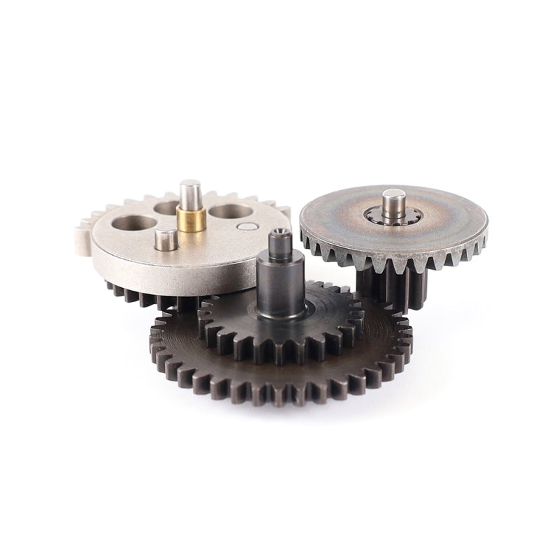 These gears have 13 teeth straight out of the factory, which is a departure from the standard 16 tooth design. This allows the gears to endure a much higher cyclic rate without pre-engagement, but will output lower power. A stronger spring can be installed to counteract the power loss.