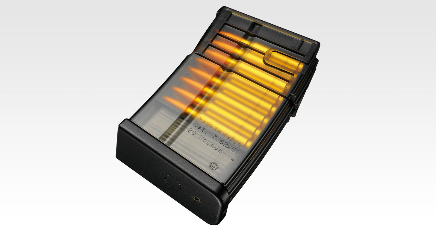 Comes with a see-through type magazine that has 70 rounds and reproduces the appearance of the internal 7.62x51mm bullets being transparent.