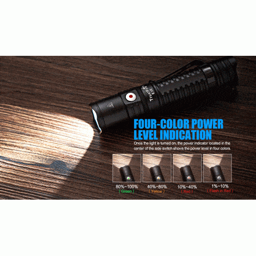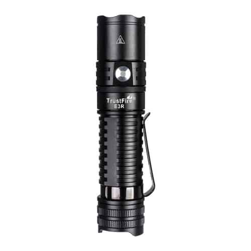 - Package includes 1x TrustFire E3R USB Flashlight, 1x 18650 3000mAh Rechargeable Battery, 1x Belt Holster, 1x USB Cable, 1x Lanyard, 2x Replacement O-rings.