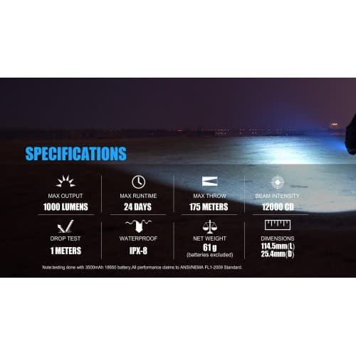 - Long Run Time: This light gives out 1000 lumens max for 105 minutes, max runtime 560 hours under 5 Lumens low mode, boasts a throw distance up to 175 meters with one 18650 battery (included). It delivers long life for everyday use like dog walking on dark roads and trails.