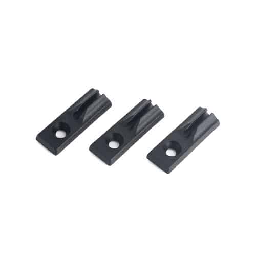 A set of three cable clips designed to tidy up your cables leading to your flashlight or PEQ unit. They mount onto any KeyMod rail system and are plastic construction to ensure it won't cut the cable or short it.Features: