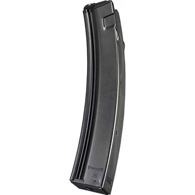 A spare magazine for the Tokyo Marui NGRS MP5 A5 AEG. These hold 72 rounds and work with the automatic bolt stop