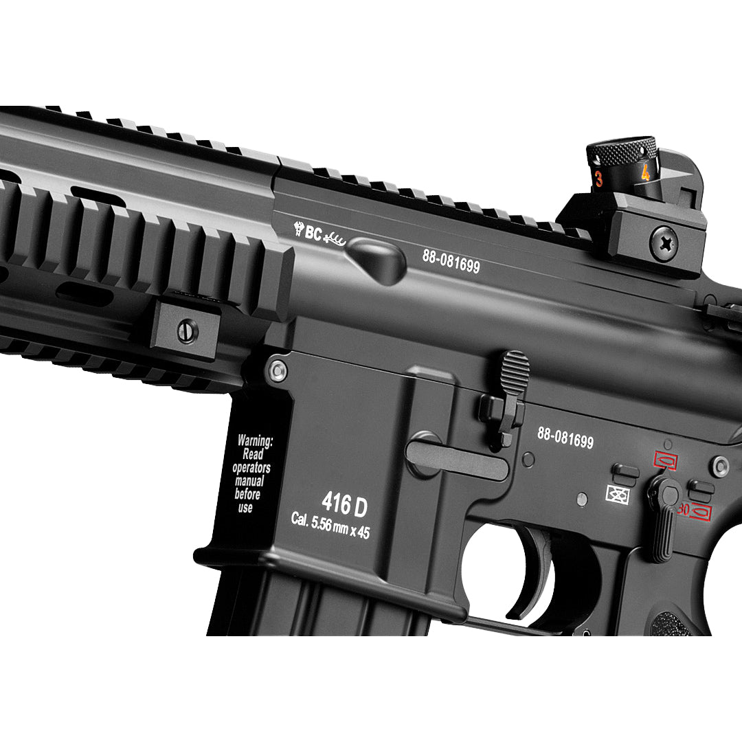 Tokyo Marui TM 416D Next Gen Recoil - Black This version of the TM416 is the long barrelled 'delta' version, built with Tokyo Marui's recoil and blowback system. The HK416 was originally created by...you guessed it, H&K! an adaptation of the AR15 design, this rifle is compatible with the standard Stanag recoil magazines, both mid and high caps. It comes with an 82 round mid cap magazine as standard. Fully adjustable 6 position stock which can be easily changed if you have the deans/tamiya modification done.